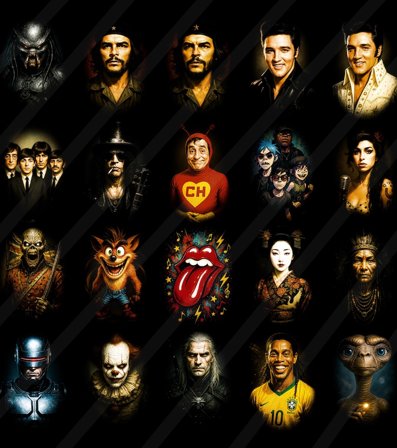 Si buscas estampados que se vean premium de verdad, este pack es para ti. Colección de diseños realistas trabajados en semitono, logrando un acabado con profundidad, textura y detalle que destaca muchísimo en prendas, especialmente en playera negra. 😮💨👕